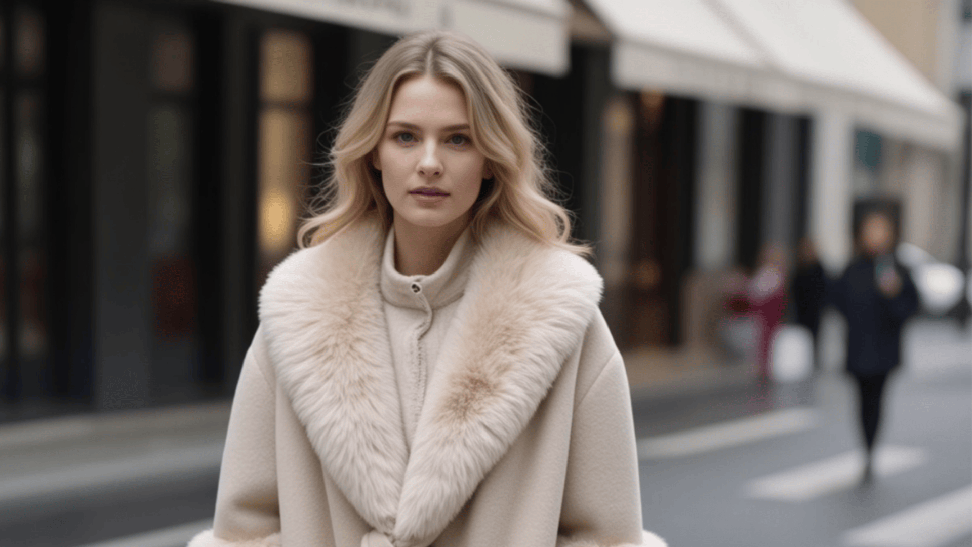 Jejich měkká textura a volnější střih působí jemně a sebevědomě zároveň – jako nenápadný luxus, který nepřehání, ale rozhodně nezanikne . Přes šaty se položí krátký kabát z béžové umělé kožešiny. Prá